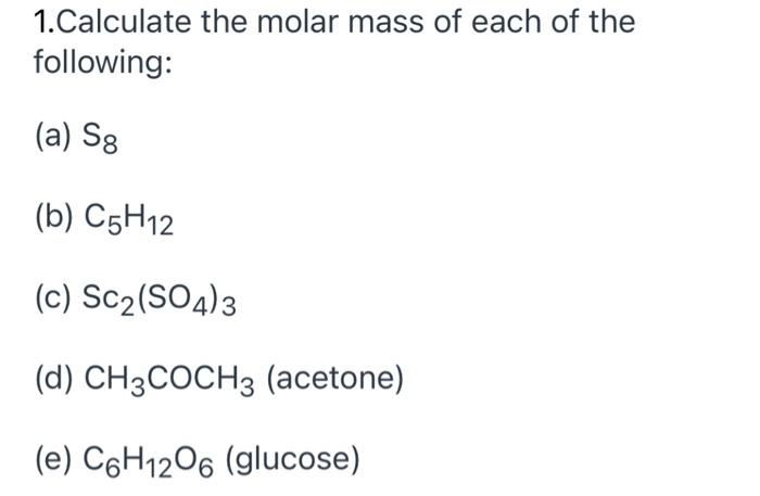 Solved 1 Calculate The Molar Mass Of Each Of The Following Chegg Com
