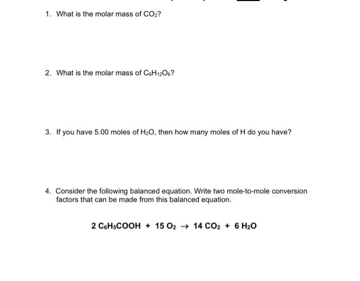 Solved 1 What Is The Molar Mass Of Co2 2 What Is The Chegg Com